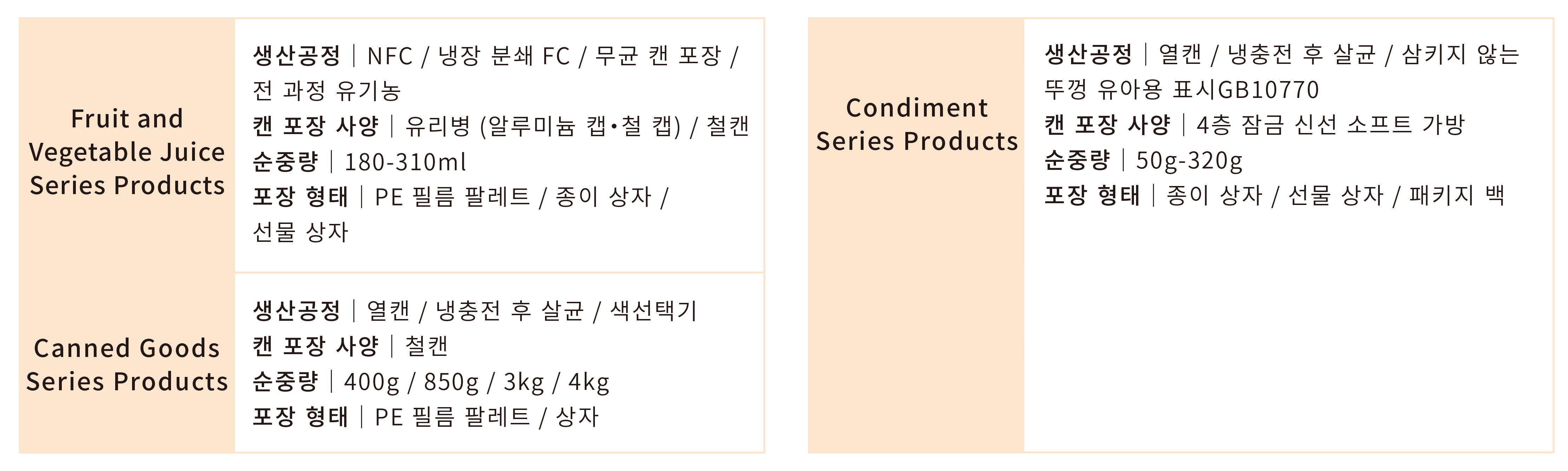 「 과일과 채소 주스 시리즈 제품・통조림 시리즈 제품・양념 소스 시리즈 제품 」